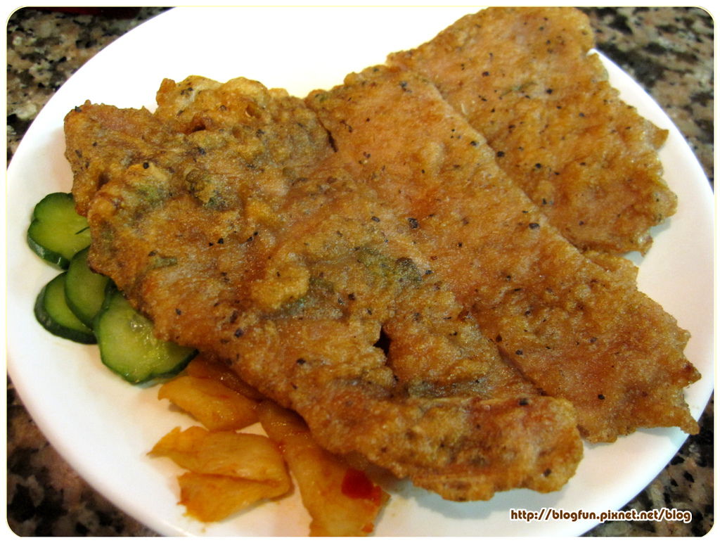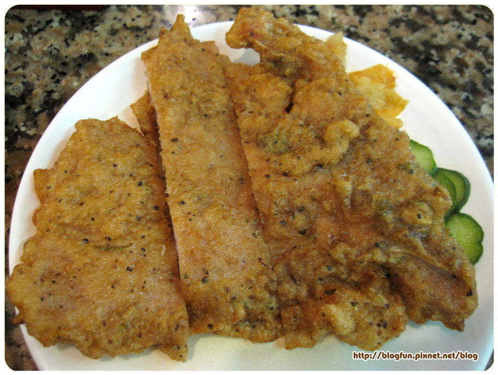 排骨有包薄粉下去炸, 面衣不會很厚,但卻保留脆感。 不過排骨單吃有點鹹,要配飯或是麵才好。