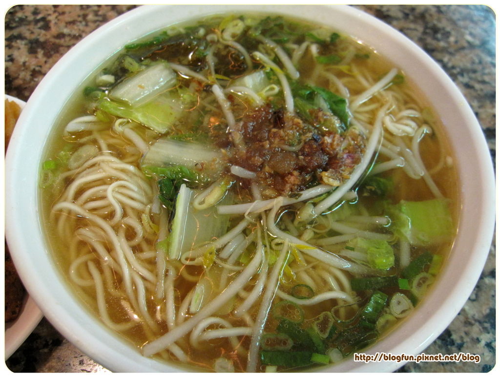 點完餐後,沒有號碼牌,沒有收據, 直接到位置上後,沒多久就送餐來了。 那這樣他怎麼知道我們吃什麼? 後來根據我研究的結果, 在櫃檯點餐的同時, 就會有服務人員在旁邊看你點什麼去廚房叫, 並且記住你的樣子,餐點做好後會去找你送餐。 這些資深老員工的親切服務,令人備感溫馨。 這是我點的排骨麵,130元。