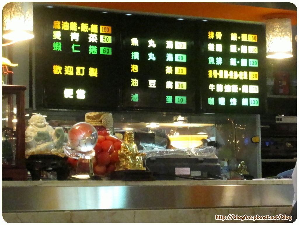來吃飯的這天剛好東一排骨的電視上放著央視春晚, 加上東一排骨的大歌廳音響(誤), 整個氣勢磅礡、熱鬧滾滾~ 在櫃檯貌似老闆娘的中年婦人, 也是穿著講究、妖嬌美麗,但又很有架勢。 旁邊的服務人員則是注意客人點什麼餐好隨時去廚房叫餐,非常積極。