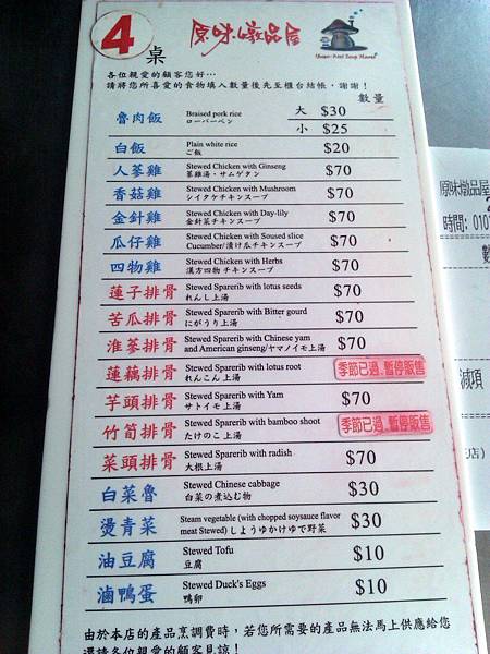 但基本上我認為原味燉品屋的湯底都是一樣的,當然啦!雞湯歸雞湯、排骨歸排骨,總不能雞湯用豬大骨熬吧