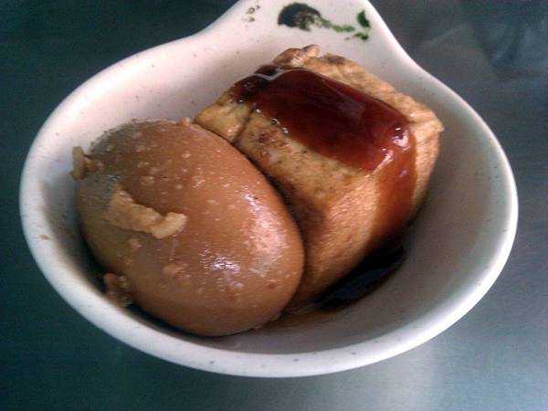 這邊就是小菜的部分,一塊滷豆腐跟魯鴨蛋!